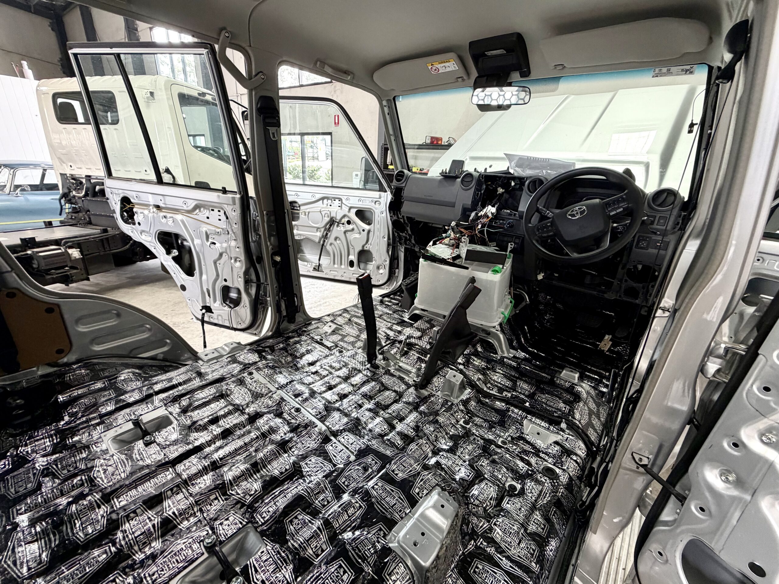 The interior has been completely stripped back for soundproofing and the installation of a new premium sound system by our skilled Auto Electrician. When it’s finished, this will be a very different driving experience to a stock V8.