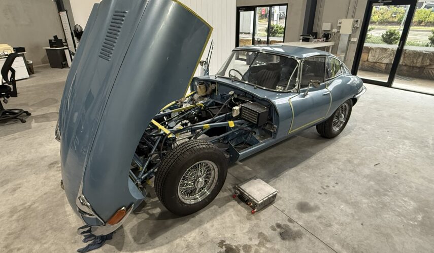 The long-anticipated Jaguar E-Type has arrived at our workshop from WA, and our engineers are already hard at work. Wasting no time, they’ve jumped straight in, beginning test fitting of our electric components and preparing for the next stage of fabrication.